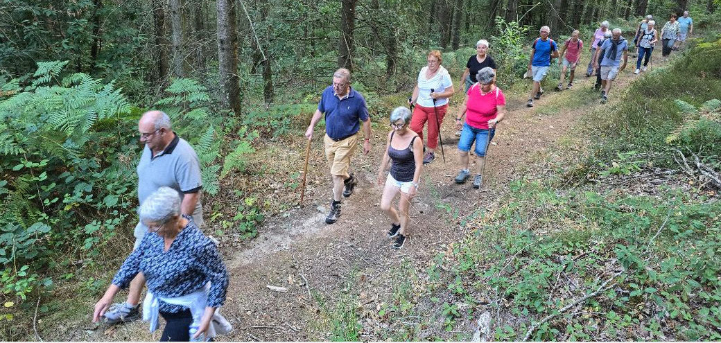Notre village attire de nombreux randonneurs ! Le 29 juillet, 25 adhérents de l'association jouvencelle* "Balades et Patrimoine" se sont retrouvés à l'aire de loisirs pour commencer un circuit de 2 heures commenté par Bertrand qui les a guidés sur le "sentier des grès".