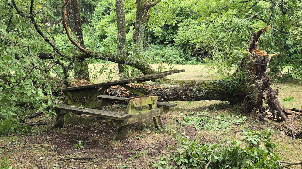 La "tempête" du 20 juillet a vu de nombreux arbres tomber. L'aire de loisirs n'a pas été épargnée mais le terrain proche du "City" non plus !