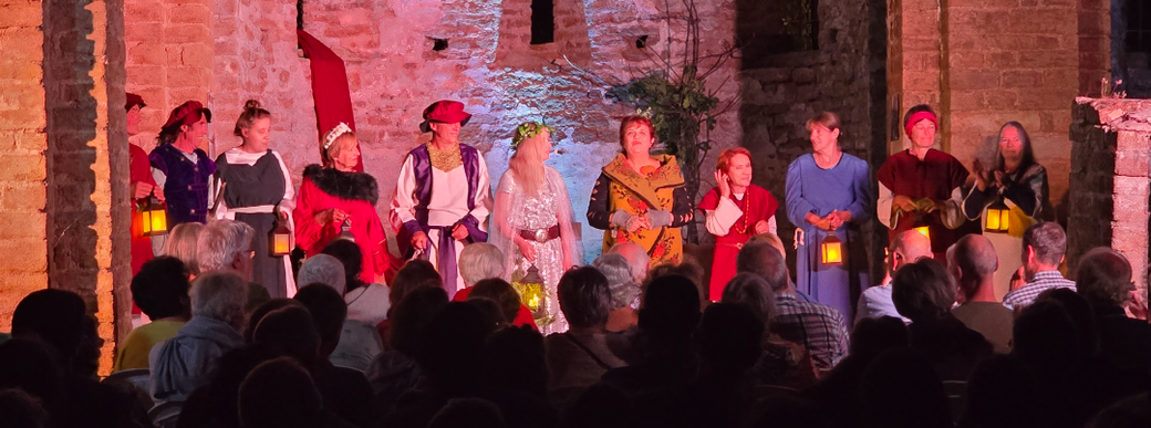 Et ce fut de nouveau un moment magique où le temps est insaisissable, où les légendes semblent devenir réalité, et où la musique envoûtante nous entraîne dans un monde mystérieusement féérique. Une grande bande de tissu écarlate, un arbre près de la croix, le fond de scène est sobre et élégant. Et quand les projecteurs s’allument, le chœur s’enveloppe de rouge et de bleu. Le mystère de Bélanore peut se renouveler.