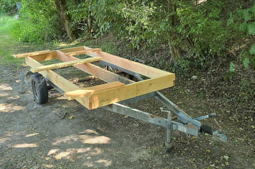 La transformation de l'ancienne caravane donnée par Florence pour être transformée en petite scène mobile avance... La pose d'une structure bois pour rehausser le châssis permettra de recevoir le plancher.