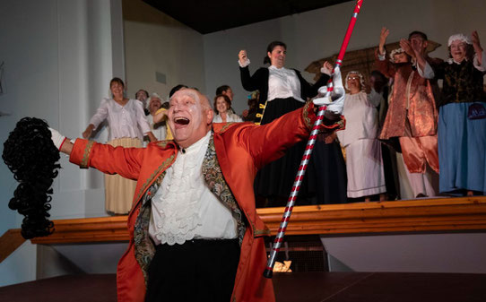 Ce fut un bel encouragement pour les vingt-six comédiens et leur metteuse en scène, qui travaillaient depuis longtemps à l’élaboration de ce spectacle ambitieux dans lequel une troupe locale présente des scènes de Molière au roi Louis XIV, en espérant pouvoir les jouer à Versailles. Des costumes superbes, des chansons, des danses… rien ne manquait pour séduire ce roi plus vrai que nature et sa favorite un peu trop mijaurée.